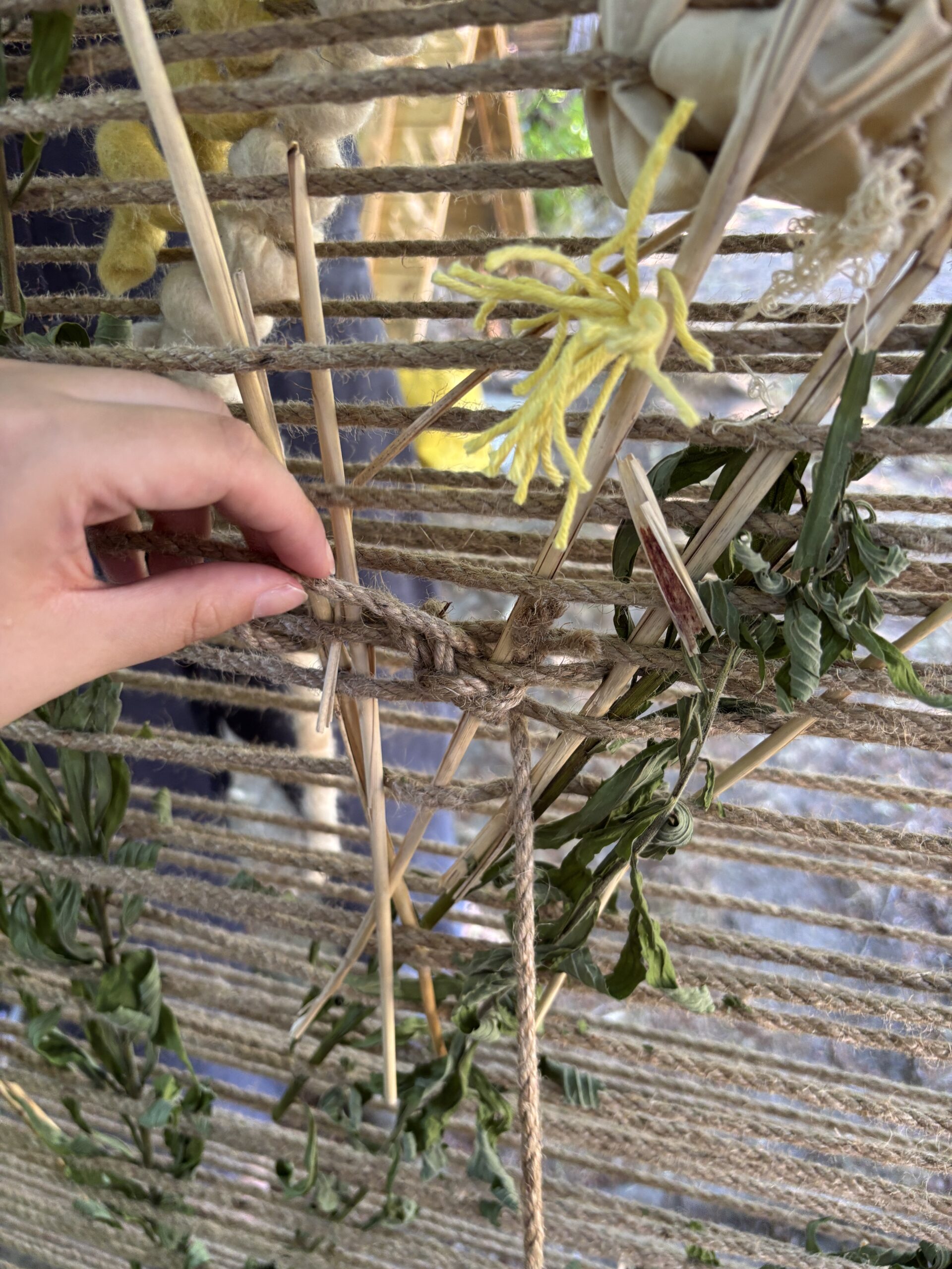 Pflanzengefärbte Fasern, natürliche Fundstücke und das, was der Garten selbst uns schenkt, verbinden sich zu einem wachsenden Gewebe – Schicht für Schicht, Geschichte für Geschichte. Gemeinsam entsteht so eine experimentelle NaturKunst-Installation, die mit ihrer Umwelt (Sonne, Regen, Wind, Tiere, Menschen, …) in Interaktion tritt.